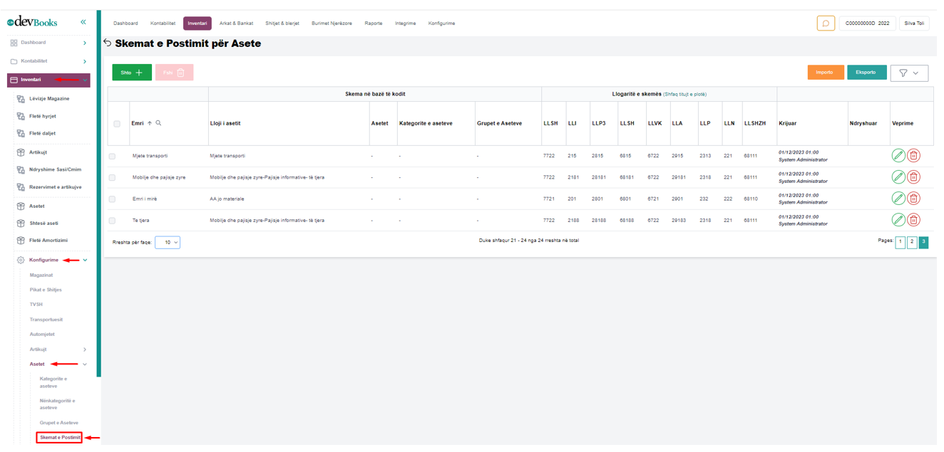 Figura 173. Lista e aseteve te regjistruara ne sistem