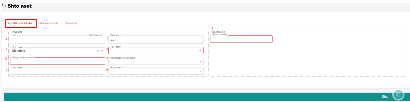 Tipi i Aseteve (4) –gjate momentit te plotesimit te llojit te asetit, automatikisht shfaqet e plotesuar nese :