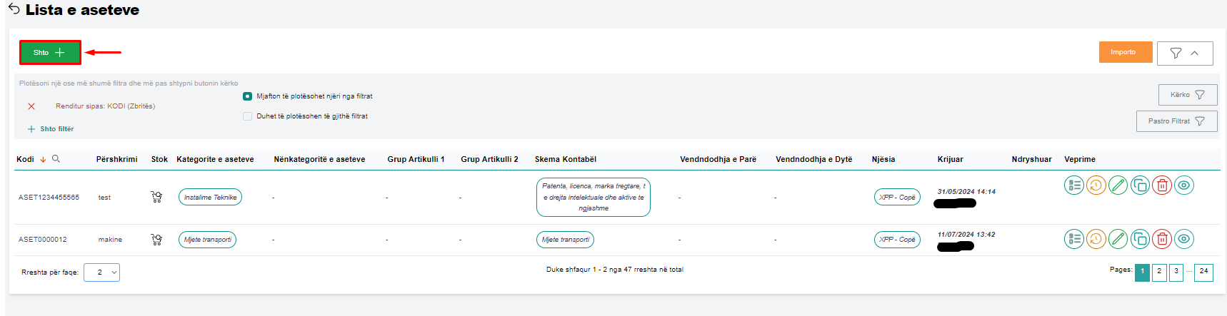 Do t'ju shfaqet lista e aseteve të regjistruar në sistem, më pas klikoni butonin Shto (fig x).