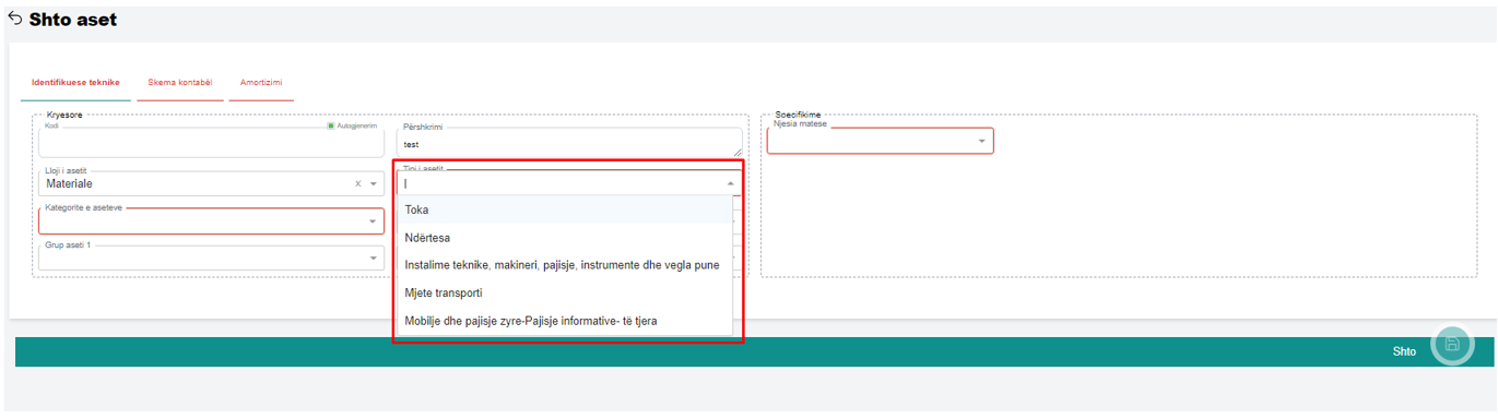 Tipi i Aseteve (4) –gjate momentit te plotesimit te llojit te asetit, automatikisht shfaqet e plotesuar nese :