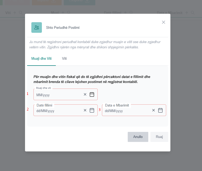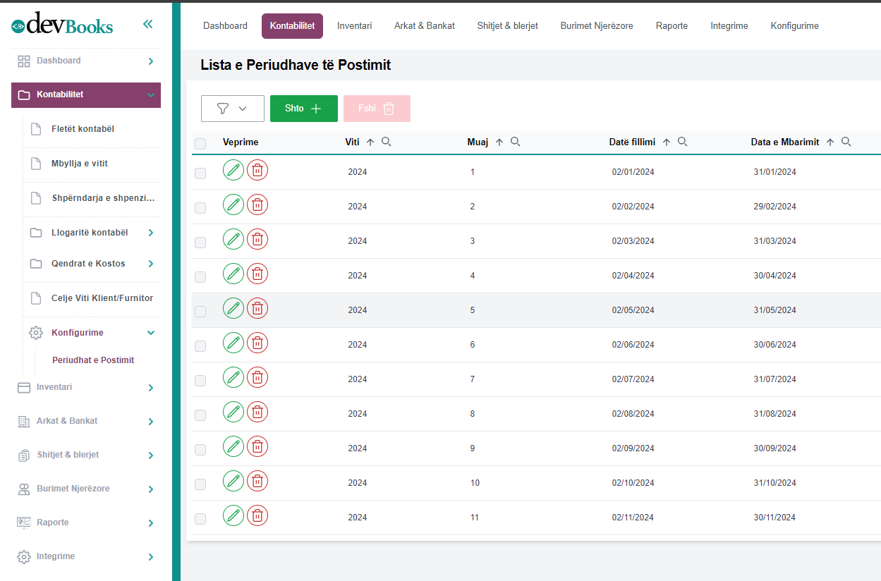 - Kontabilitet / Konfigurime / Periudhat e Postimit