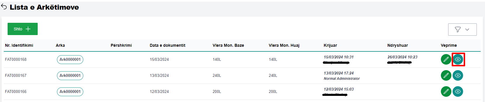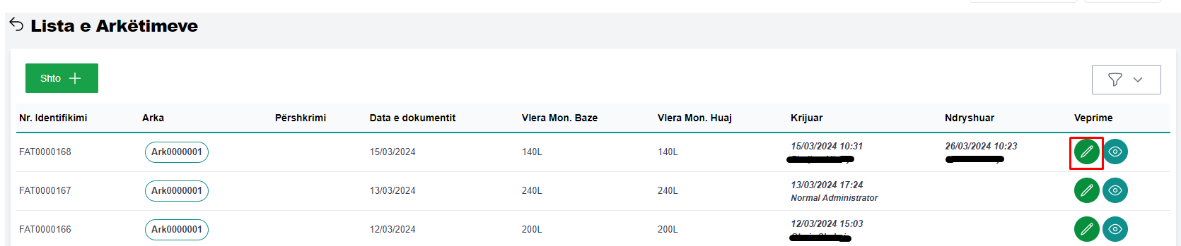 Për të parë të gjitha detaj e një mandat arkëtimi, përzgjidhni mandatin dhe klikoni në butonin Shiko (fig 3.1).