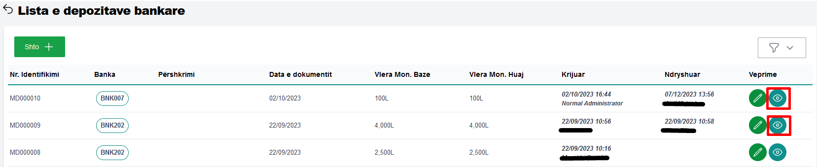 Për të parë të gjitha detaj e një mandat depozitimi, përzgjidhni mandatin dhe klikoni në butonin Shiko (fig 3.1)