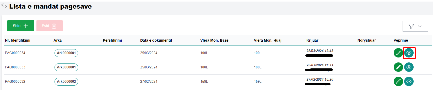 Për të kontrolluar detajet e një mandat pagese, përzgjidhni mandat pagesën dhe klikoni në butonin Shiko (fig 3.1).