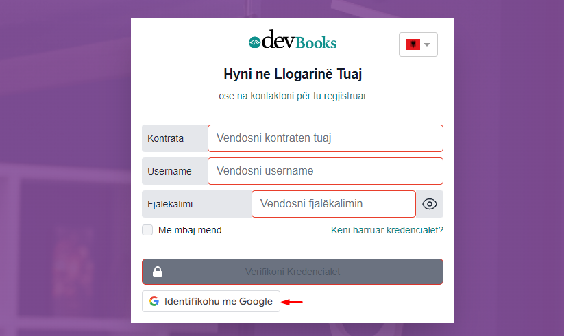 Për t'u loguar në sistem navigoni në linkun: https://demo.devbooks.al/auth/login