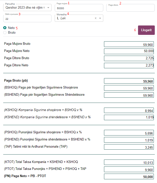 - Ditet e Punuara : Numri total i diteve të punuara nga punonjësi gjatë periudhës llogaritëse.