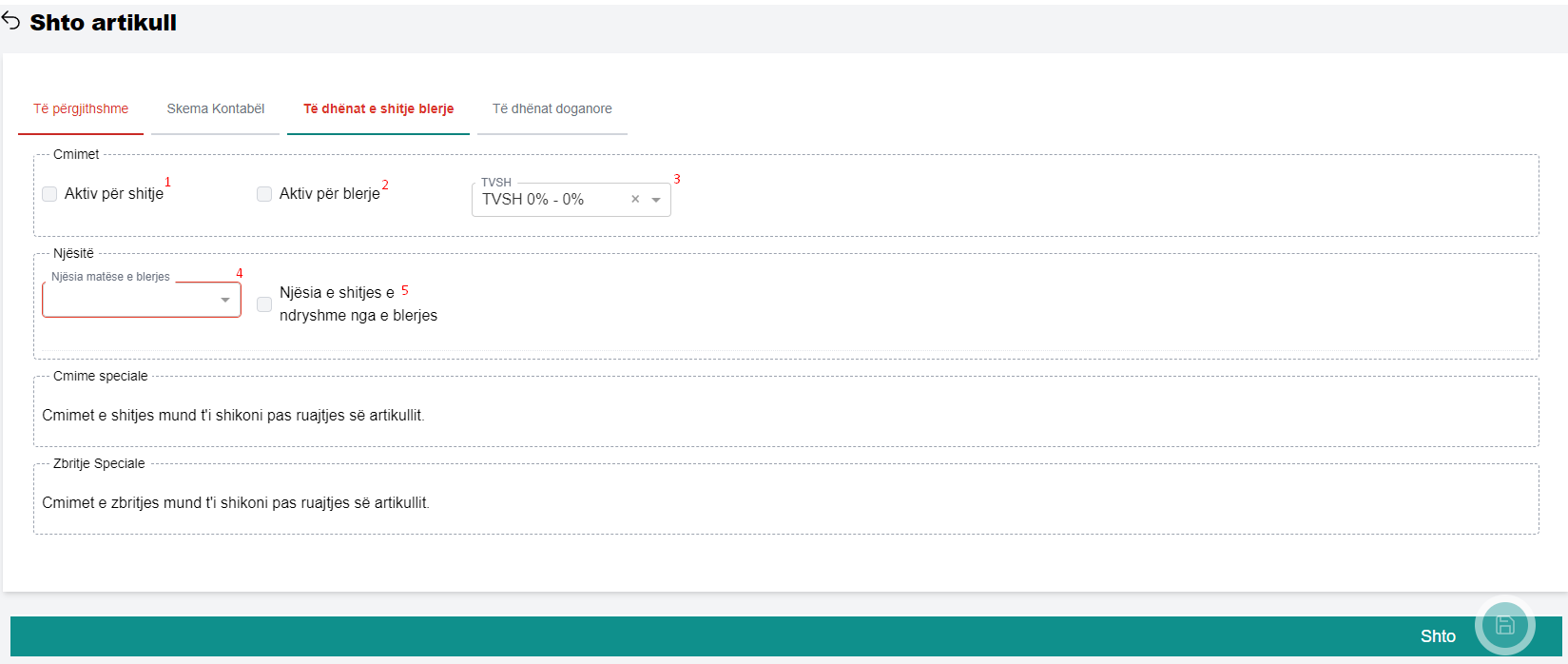 - Aktiv për shitje (1) - duke bër check box-in aktiv për shitje do mund të shtoni cmim shitje për artikullin.