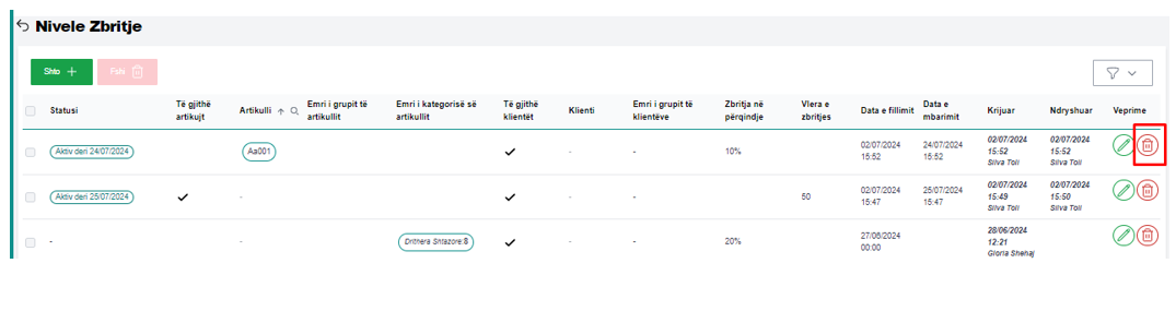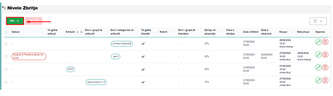 Në ekran do t’ju shfaqet lista me të gjithe nivelet e zbritjes te shtuar në sistem. Për të shtuar një nivel zbritje te ri klikoni në butonin Shto.