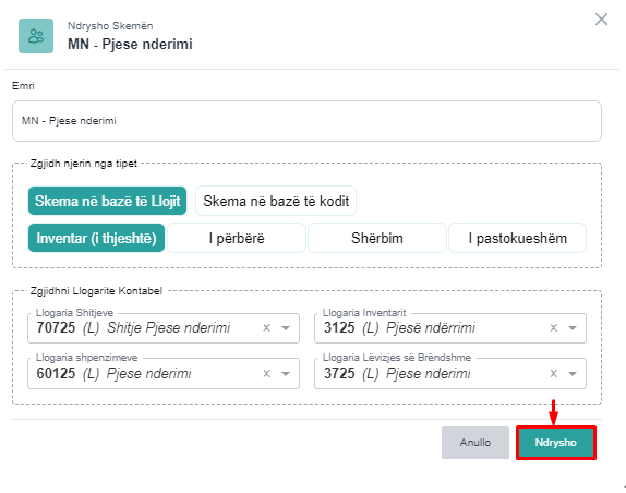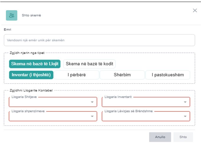 Llogarite kontabel: Llogarite kontabel qe do preken ne momentin qe kryhen veprime me kete skeme postimi ne sistem.