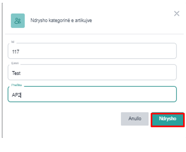 Për të edituar një kategori artikull klikoni butonin Ndrysho (fig 89). Modifikoni të dhënat dhe më pas klikoni në butonin Ndrysho (fig 90).