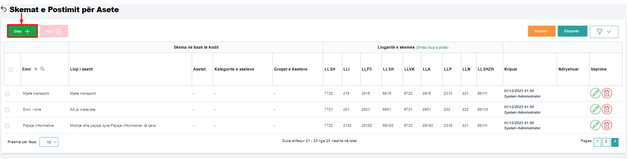 Në ekran do t’ju shfaqet lista me të gjithe skemat e postimit te shtuar në sistem per artikujt. Për të shtuar një skeme postimi te ri klikoni në butonin Shto.