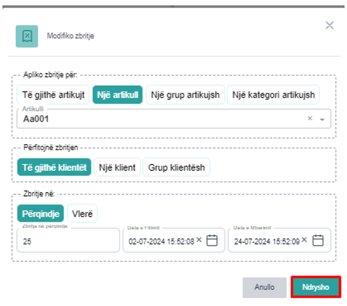 6.1.6.2.2 Editimi i Niveleve te Zbritjes