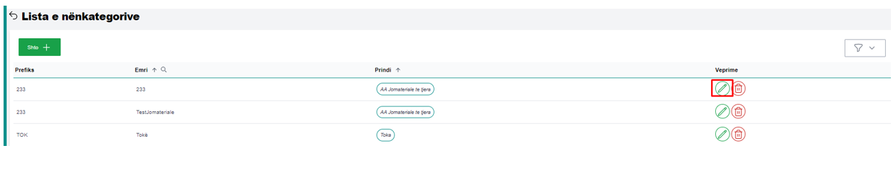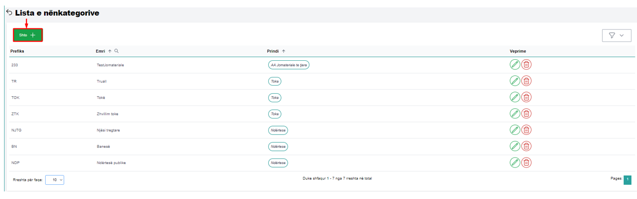 Në ekran do t’ju shfaqet lista me të gjithe nenkategorite e aseteve te shtuar në sistem. Për të shtuar një nenkategori aseti te ri klikoni në butonin Shto.