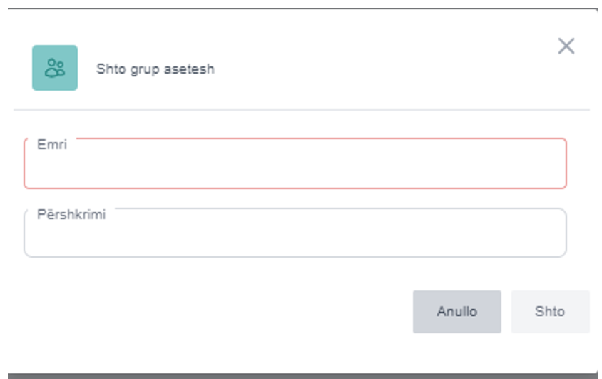 Pasi jane plotesuar te dhenat e nevojshmme klikohet fusha “Shto” per te ruajtur grupin e asetit.