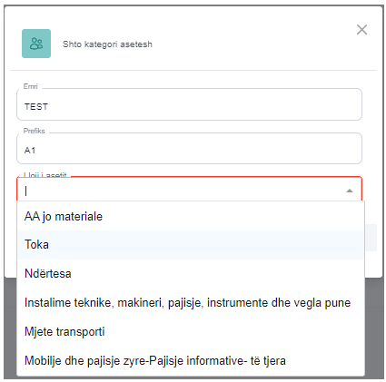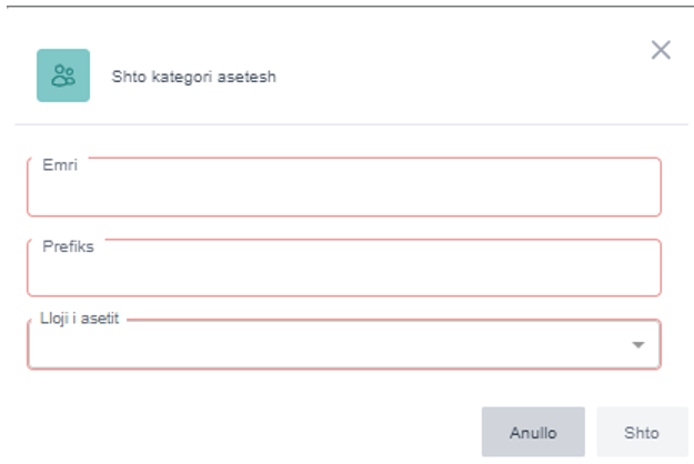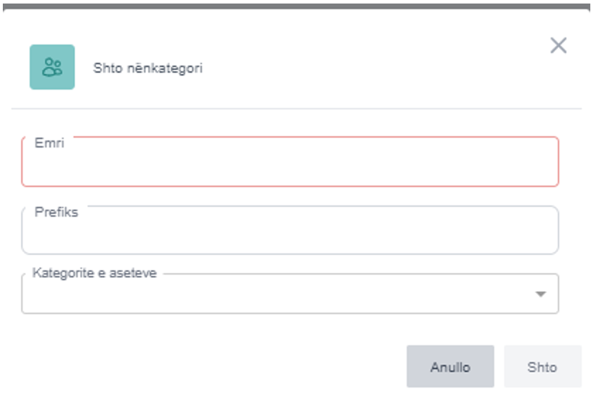 · Kategorite e aseteve : percaktohet kategoria qe i perket nenkategoria.