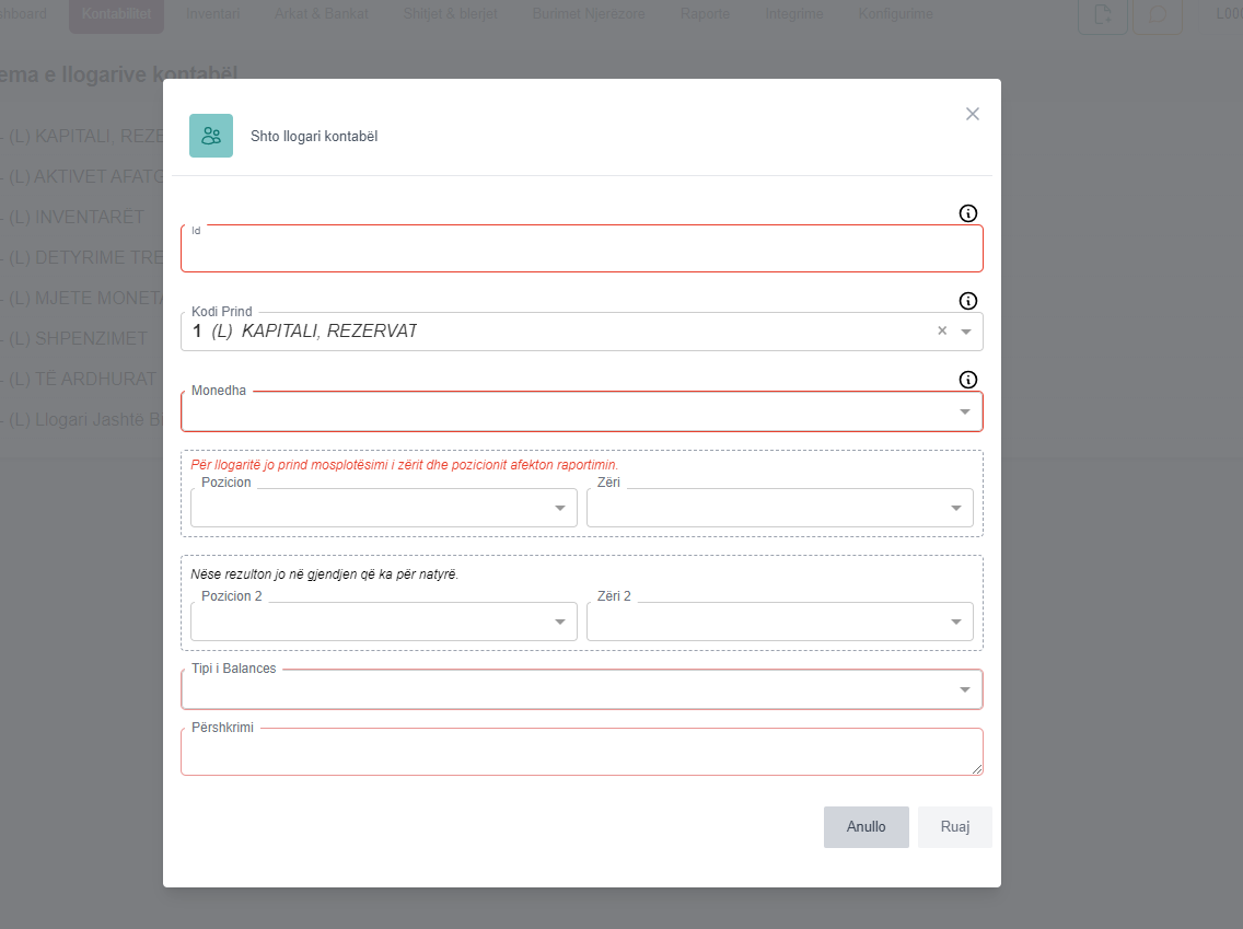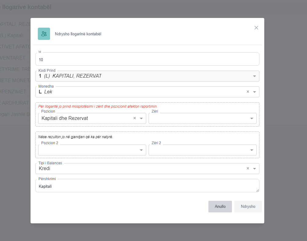 Në klikim të saj ju shfaqet dritarja e mëposhtëme ku mund të kryeni ndryshimet e nevojshme.