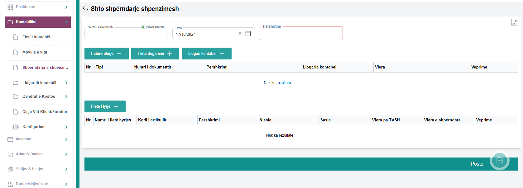 Për të shtuar një dokument të ri klikojmë mbi butonin ‘Shto’ dhe do të na shfaqet dritarja.