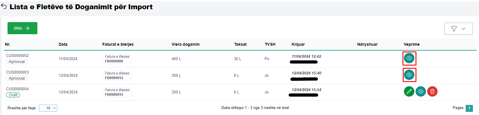 Figura 1.1 Lista e Fletëve të Doganimit për Import