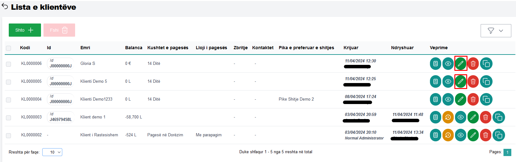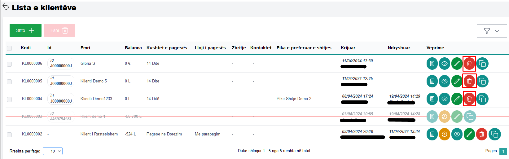 Për të fshirë klientë, përzgjidhni klientin që do të fshini dhe më pas klikoni butonin Fshi (fig 5.1).