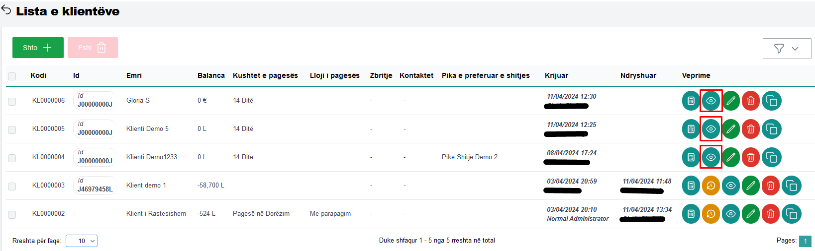 Për të kontrolluar të dhënat e një klienti, klikoni ne butonin Shiko (fig 3.1).