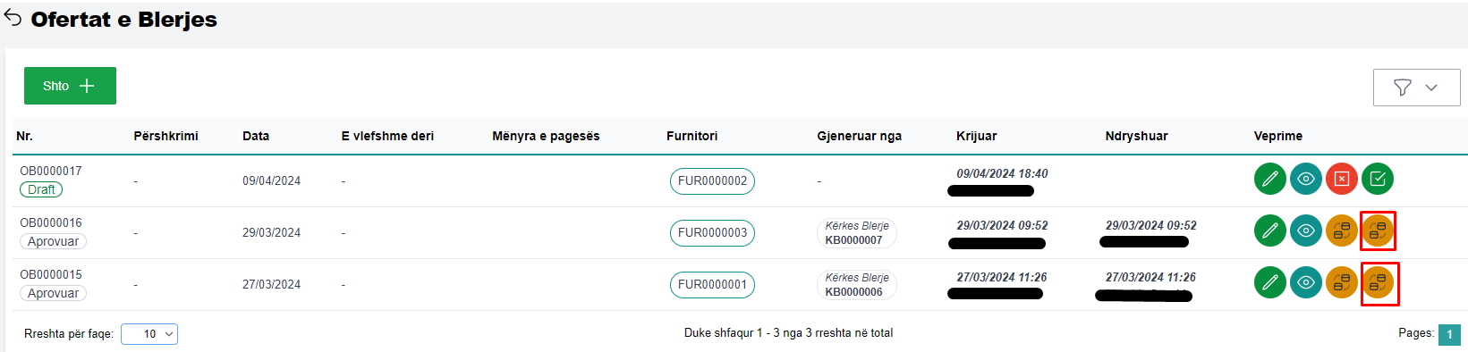 Për të edituar një ofertë blerje, përzgjidhni ofertën që do të editoni dhe më pas klikoni butonin Edit (fig 2.1).