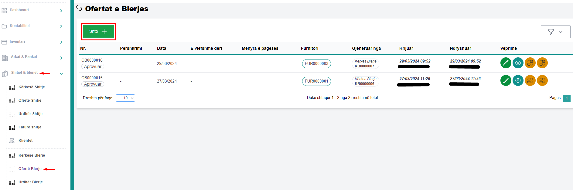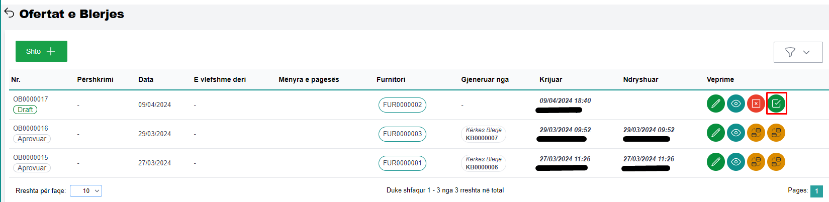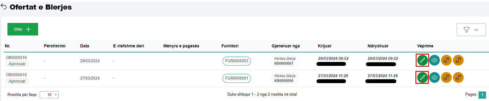 Për të edituar një ofertë blerje, përzgjidhni ofertën që do të editoni dhe më pas klikoni butonin Edit (fig 2.1).