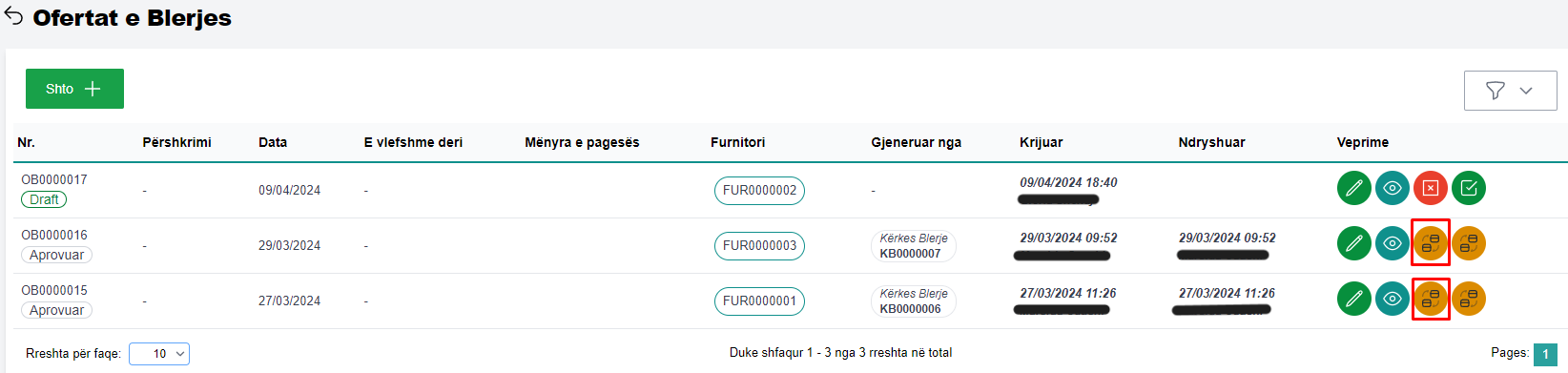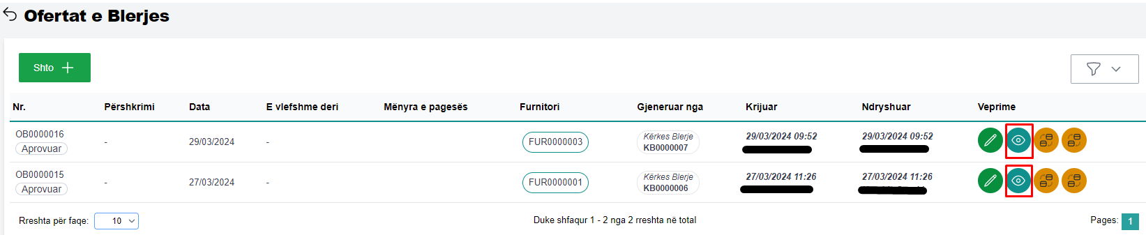 Për të kontrolluar të dhënat e një ofertë blerje, përzgjidhni ofertën të dhënat e të cilës doni të kontrolloni dhe klikoni në butonin Shiko (fig 3.1)
