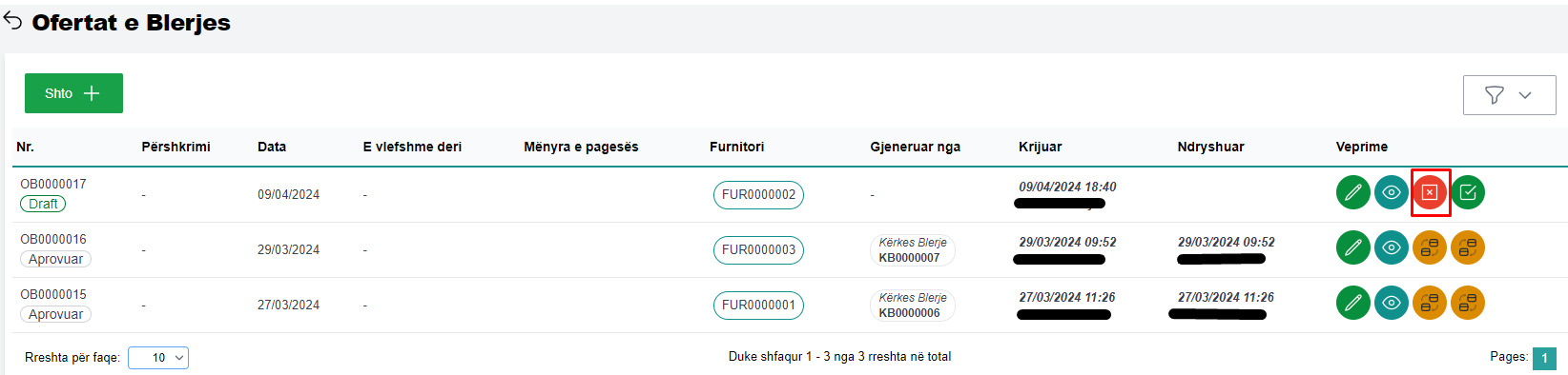 Për të aprovuar një ofertë blerje që ndodhet në statusin Draft mjaftonë të klikoni butonin Aprovo (fig 4.1).